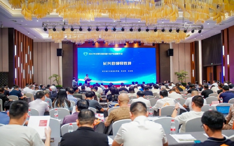 7月4日,2024年全國長絲織造行業產品創新年會在浙江長興召開,長興縣領導、相關部門負···